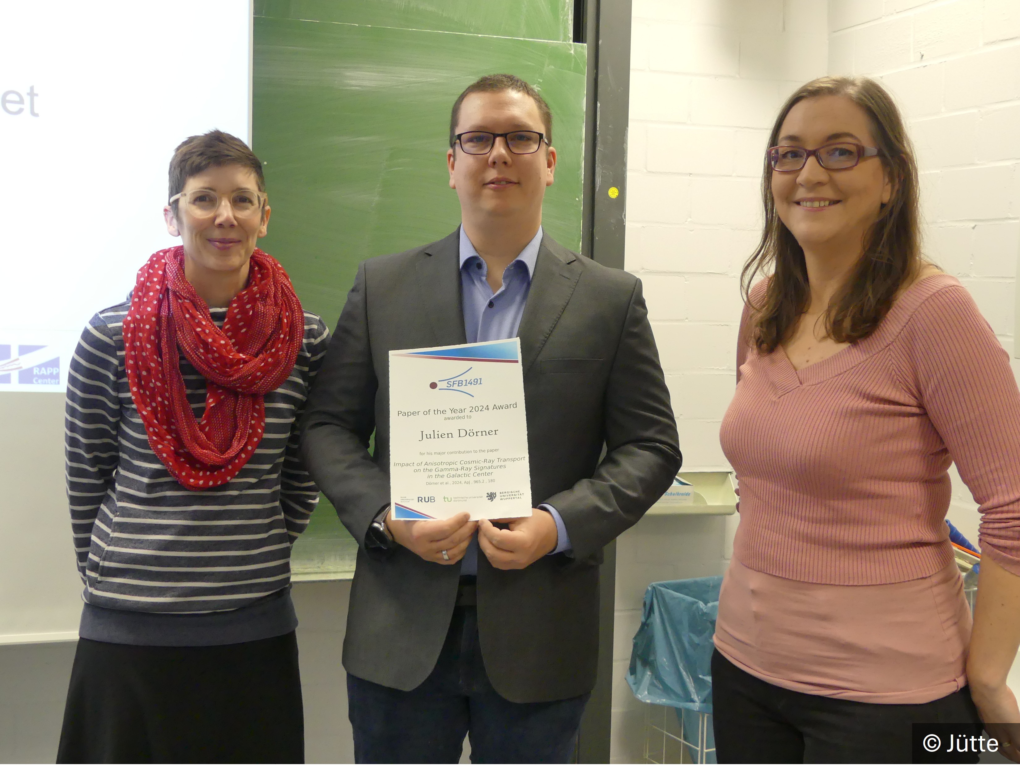 Congratulations to Julien Dörner who has been awarded the SFB1491 Paper of the Year 2024 Award for his crucial contribution to the understanding of cosmic-ray propagation in the Galactic Center region!